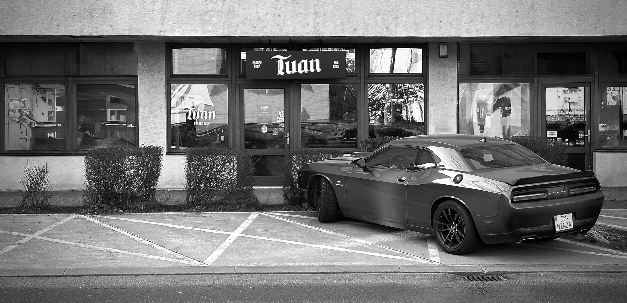 Parking spaces are available directly in front of the shop along the street.